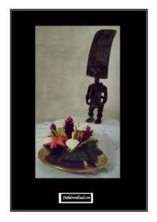 DIGITAL PICTURE WITH ONE STATUETTE AND TROPICAL FLOWERS |